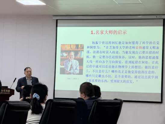 刘三阳围绕课程建设与课堂教学,从学科、专业与课程的内在关联,教学研究开展路径,教学竞赛参与策略,AI技术赋能教学创新等维度展开系统阐述,分享了“十个关系”“十重十轻”“讲课十法”“开场十例”“讲课十忌”等宝贵教学经验。他强调,课程是人才培养的核心载体,课堂是教学实施的主阵地,课程建设与课堂教学是提升教育教学质量的关键环节,教师教学能力提升对人才培养成效具有决定性作用,而教学竞赛是激发教师教学潜力、提升教学水平的有效途径。作为教育工作者,不应仅满足于引导学生掌握、记忆书本知识要点,更需助力学生理解知识的起源脉络、内在关联,甚至模拟知识的探索发现过程。他鼓励青年教师以教学竞赛为契机锤炼教学技能,以赛促教、以赛促学,在竞赛中提升教学水平、增强专业能力、树立职业自信。