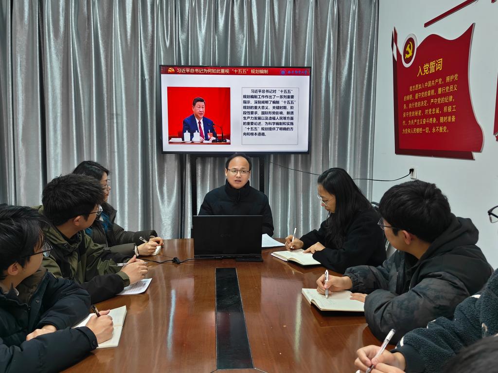 12月29日下午,副校长韩江卫走进第三党员工作站,开展“深悟党的二十届四中全会精神实质,扛起“十五五”奋进新使命”主题宣讲。理学院副处级辅导员白春乐,第三党员工作站站长、站务委员及学生党员参会聆听。
